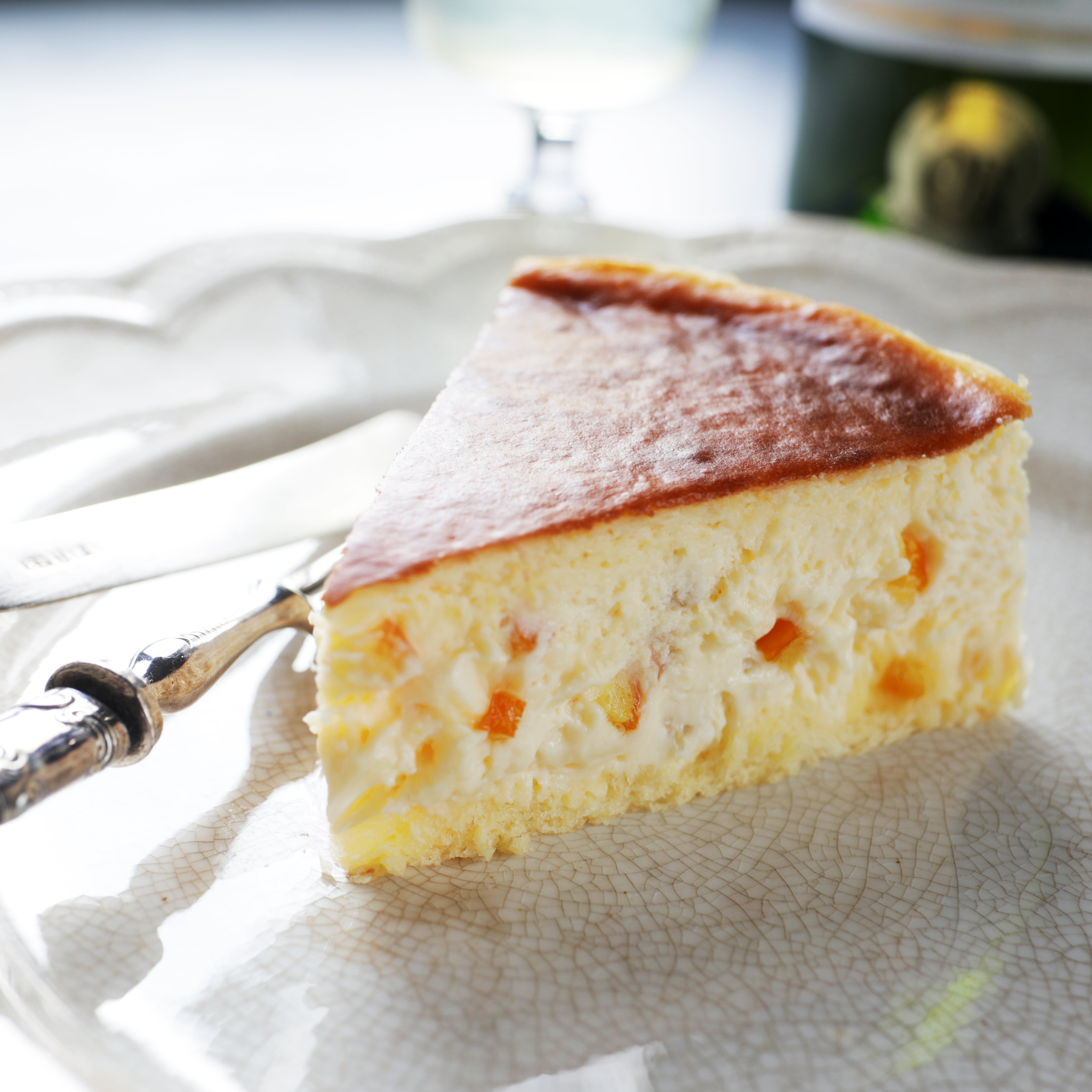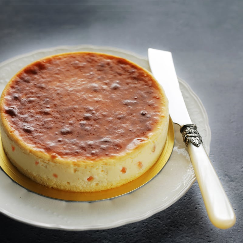瀬戸内海で収穫されたオレンジピールをブランデー漬けにして、滑らかな濃厚チーズケーキに混ぜ込んで口の中にオレンジの風味とブランデーが香る大人の為のチーズケーキです。
